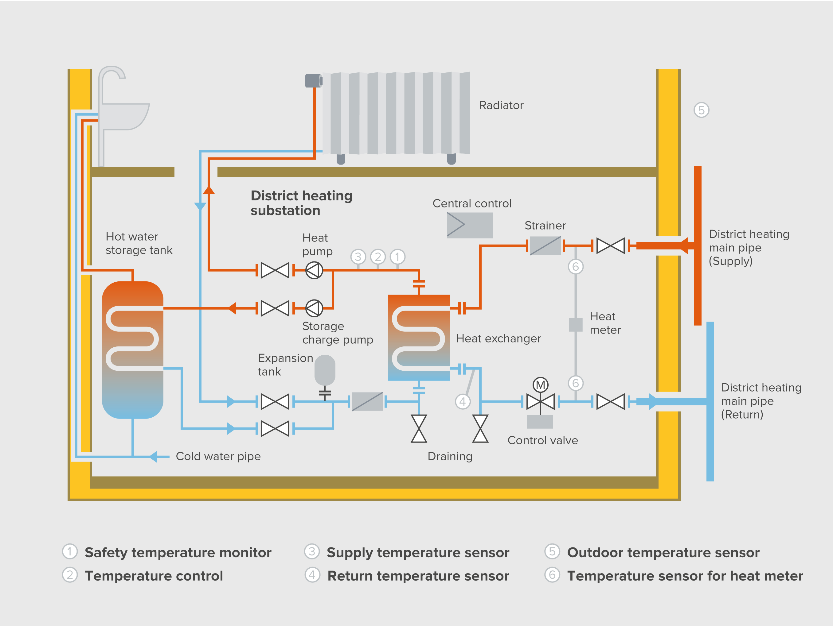 District heating contains a large network of pipes that connected the heat generating units to the storage units and subsequently transferring the hot water or steam from storage units to the end consumers’ house substations. District heating consists of the following major components in its network: